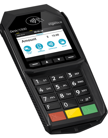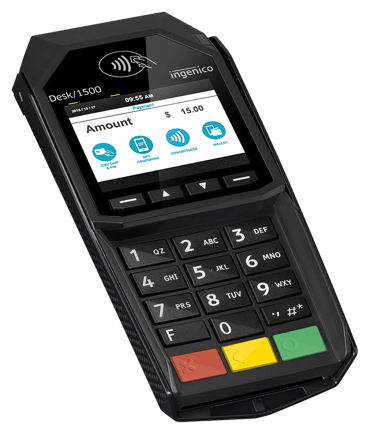 Simplify your checkout experience with the Ingenico Desk/1500 PIN pad. Enjoy the convenience of a customer-facing terminal and merchant-facing terminal set up by connecting Ingenico Desk/1500 to the Ingenico Desk/5000 countertop terminal.